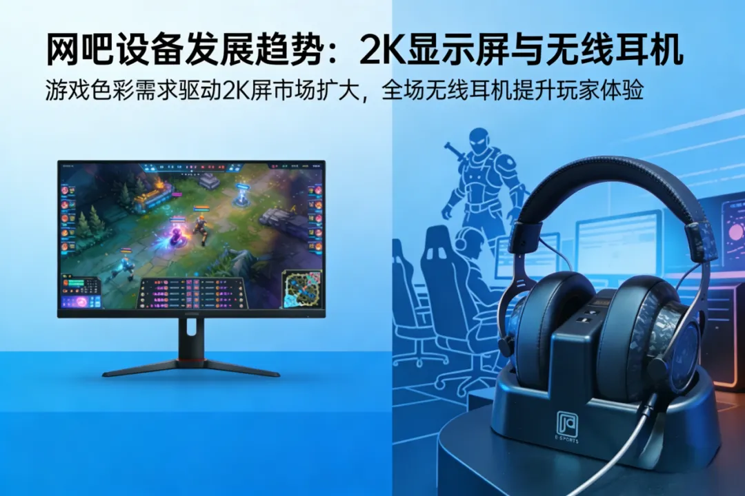 通过游戏市场,洞悉网吧行业设备发展趋势。2K显示屏更加契合游戏往色彩方向倾斜的方向,未来势必成为网吧显示器新趋势,以及无线耳机技术升级,网吧全场无线耳机能够大大提升玩家体验。