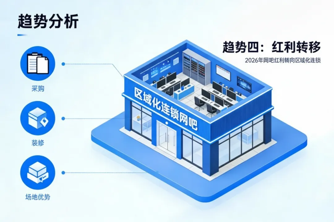 26年网吧红利转向区域化连锁。区域连锁凭借极致采购、装修、场地等优势,降低成本。成为未来短期红利。