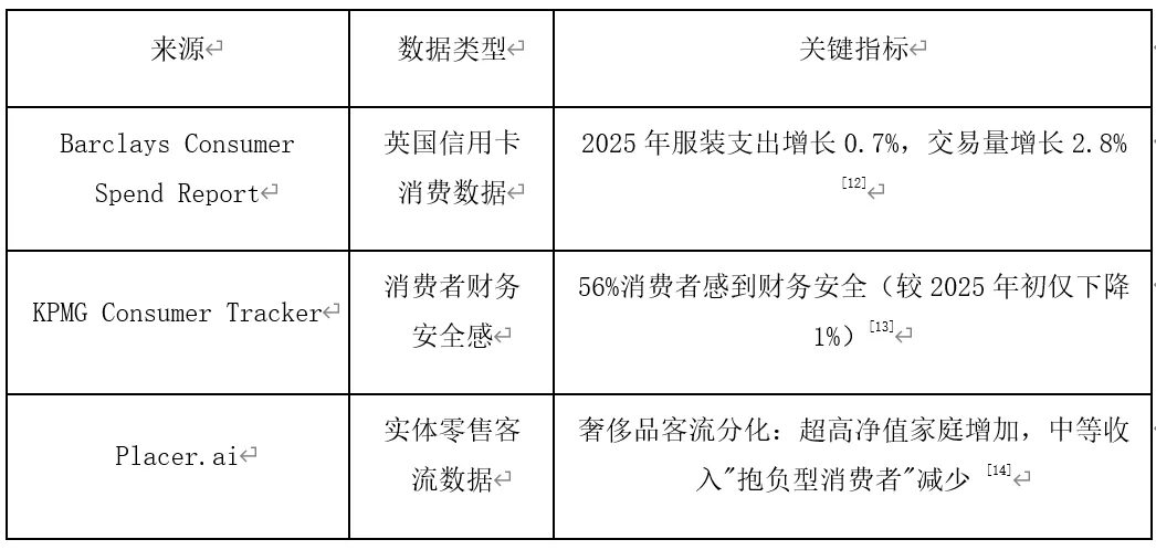 英国市场:尽管消费者信心仍低(对经济信心仅24%),但服装支出显示韧性(增长0.7%)[12]