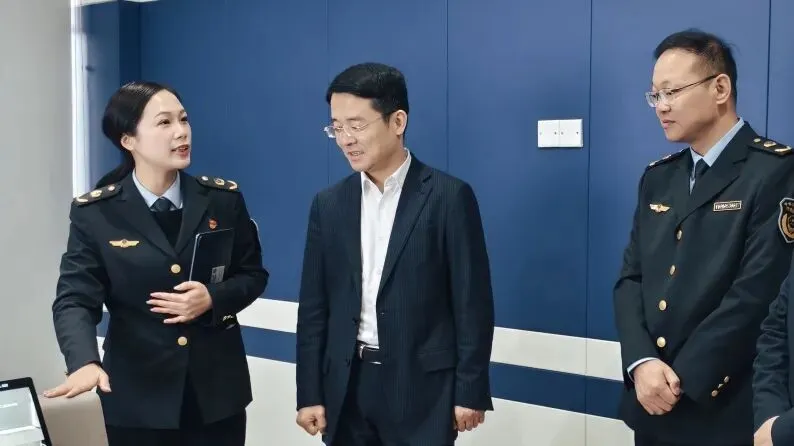 会前,孙建平一行来到萧山市场监管执法办案管理中心,先后参观了执法装备室、数据存储室、询问室、辨认室、指挥中心等功能区域,认真听取相关负责人关于场所功能布局、软硬件设施配备、案件办理流程、执法监督机制等工作介绍,对区市场监管局在提升执法效能、规范执法行为、强化科技赋能等方面取得的成效给予充分肯定。