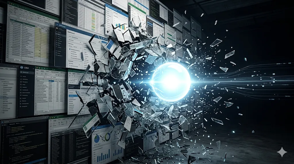 过去十几年,软件行业的逻辑是 SaaS(软件即服务)。公司花大价钱买一套复杂的 CRM 或 ERP 软件,然后还要雇一群员工,每天花几个小时在这些软件里填表、点击、拉数据。