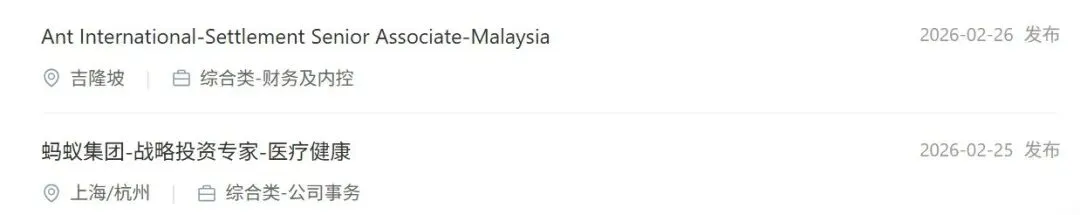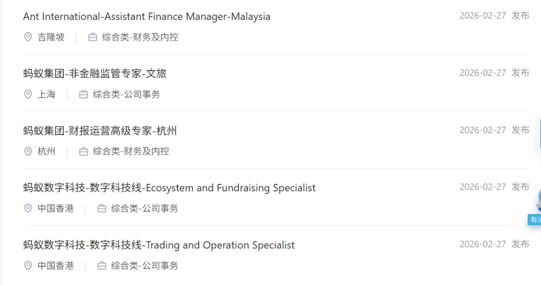 蚂蚁招聘财报运营高级专家/战投专家/助理财务经理结算经理等,base上海/杭州/吉隆坡/香港。