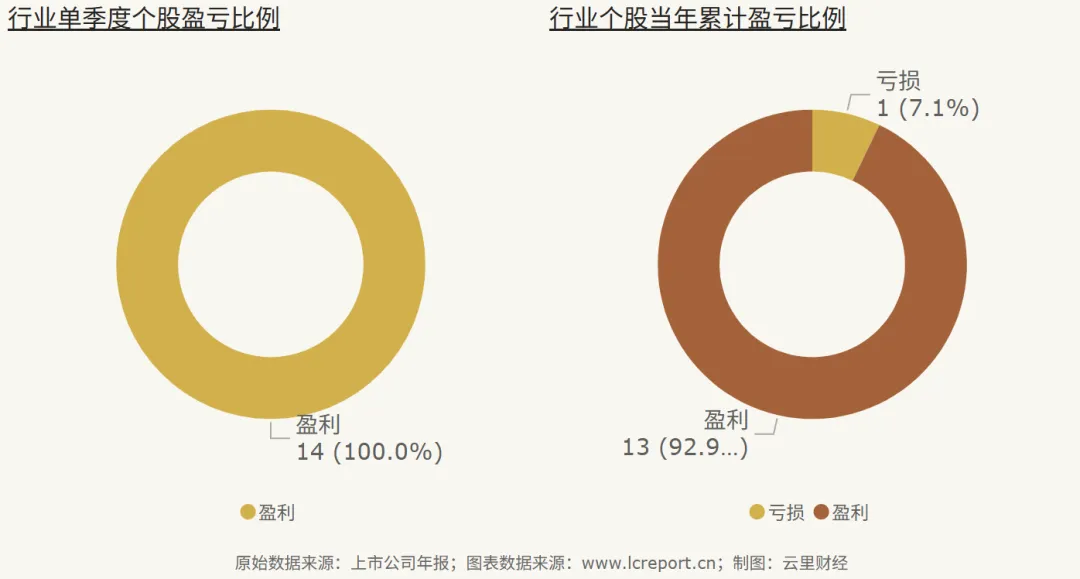2025Q3季度风电业14家沪深A股上市公司全部录得盈利,行业整体盈利面良好,无亏损企业拖累板块表现。