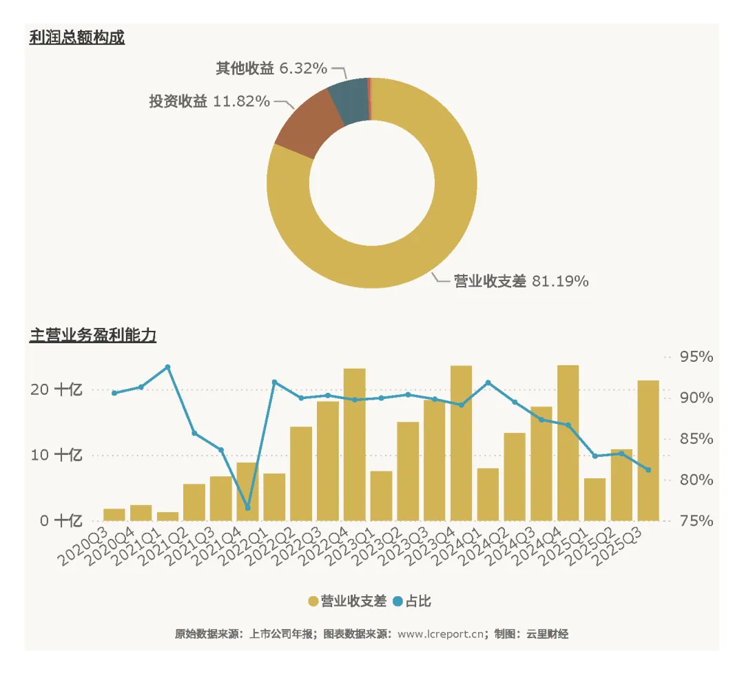 我们用营业收支差[6]来评估行业及个股的主营业务盈利能力。2025Q3季度期末,风电业实现营业收支差213.39亿元,同比变化为23.24 %,占该行业前3个季度利润总额的比例为81.19 %,主营业务成为行业利润的核心来源,行业盈利的可持续性和稳定性较强。