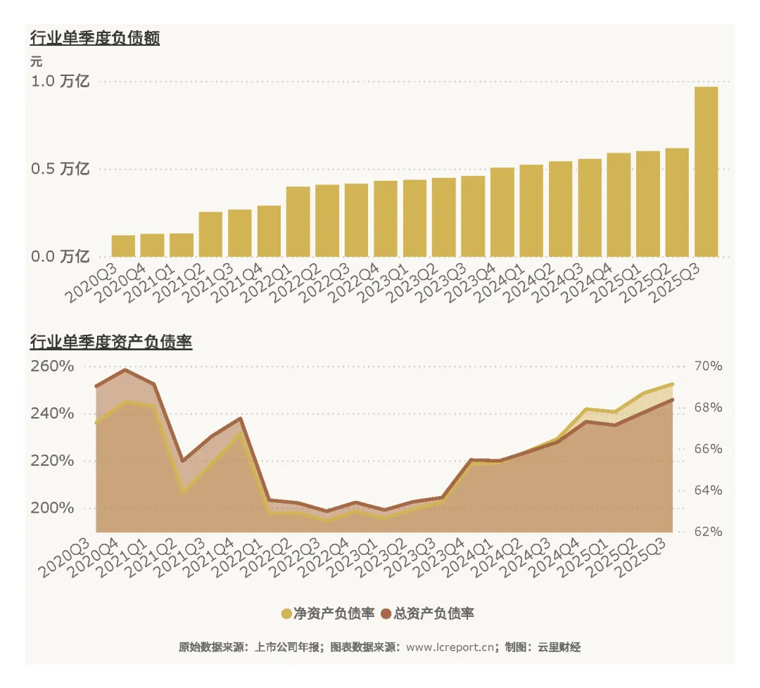 2025Q3季度风电业的总负债达到9,669.57亿元,整体总资产负债率为68.37 %。行业总负债规模随资产规模同步扩张,整体财务杠杆水平适中,偿债压力可控,财务风险较低。