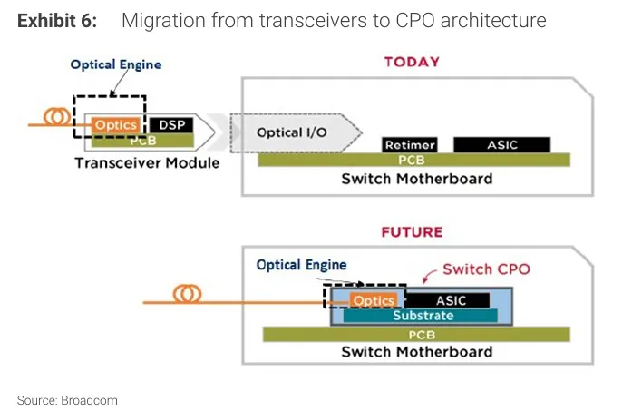 英伟达、博通(Broadcom)和迈威尔(Marvell)都与台积电在CPO方面紧密合作,由台积电将光引擎封装到交换芯片中。