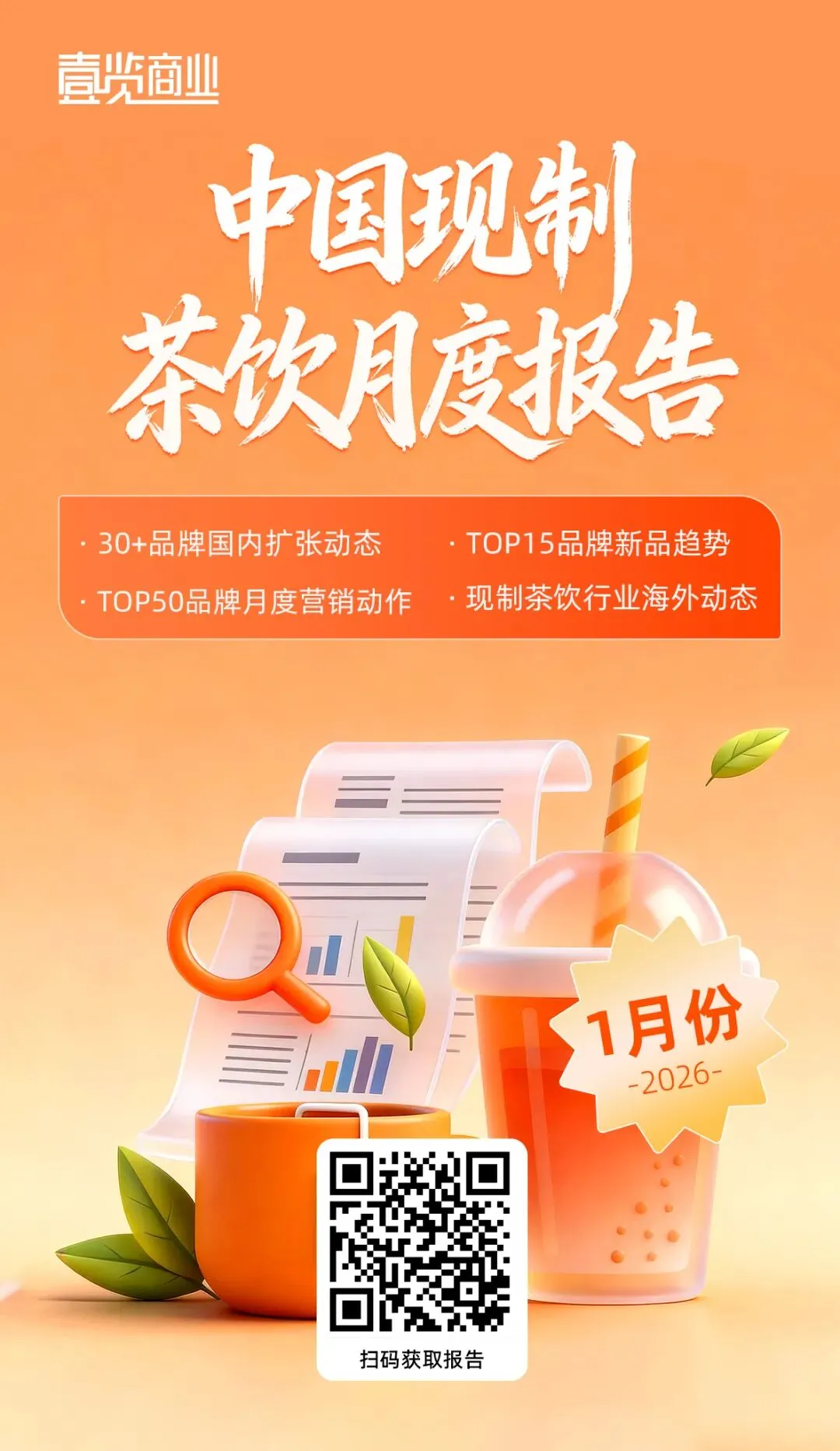 本期报告基于国内31家头部现制茶饮品牌的经营一手数据,通过详实分析,从六大核心模块为您复盘2026年1月的市场全景。