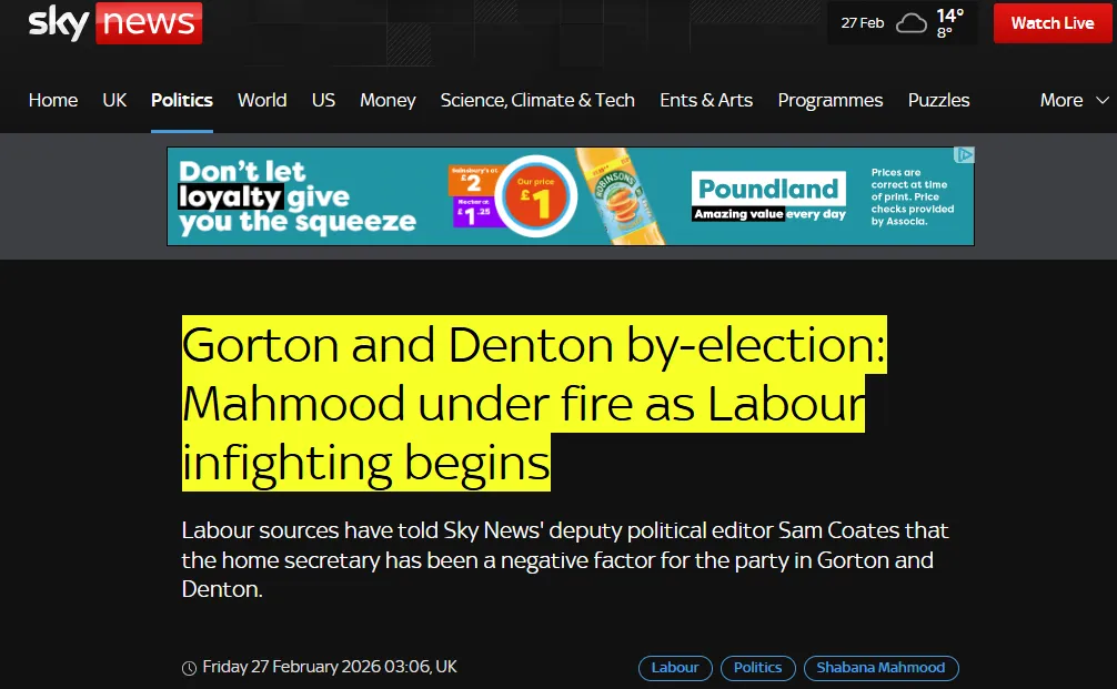 Sky News也引述党内人士指出,马哈茂德主导的内政部右倾移民政策(也就是白皮书路线),是导致该选区崩盘的直接负面因素。