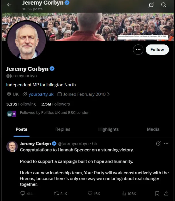 另外,前几年因不满工党右倾而愤然出走、另组「你的党」(Your Party)的前党魁柯宾(Jeremy Corbyn),也在选后迅速表态,称未来愿意与绿党展开建设性合作,进一步整合全英的左翼势力。