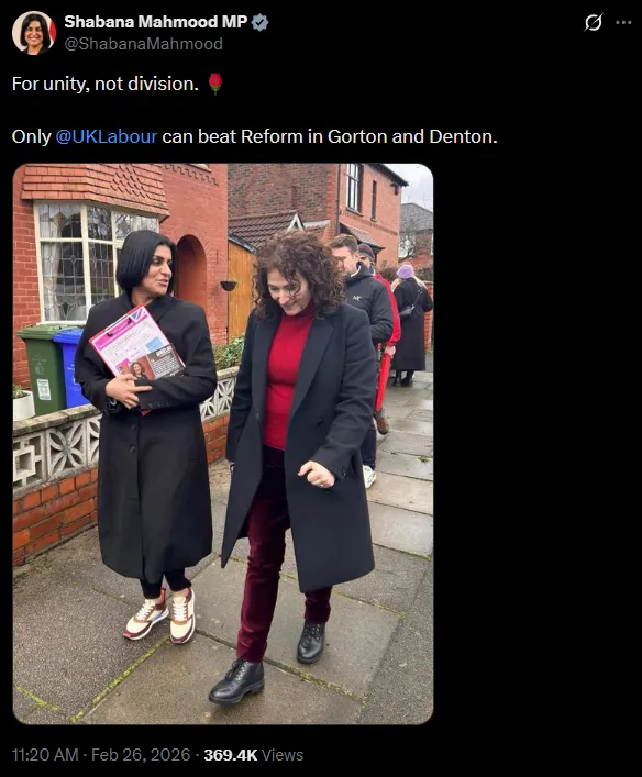 打脸进行时,评论区更精彩 © Shabana Mahmood. X