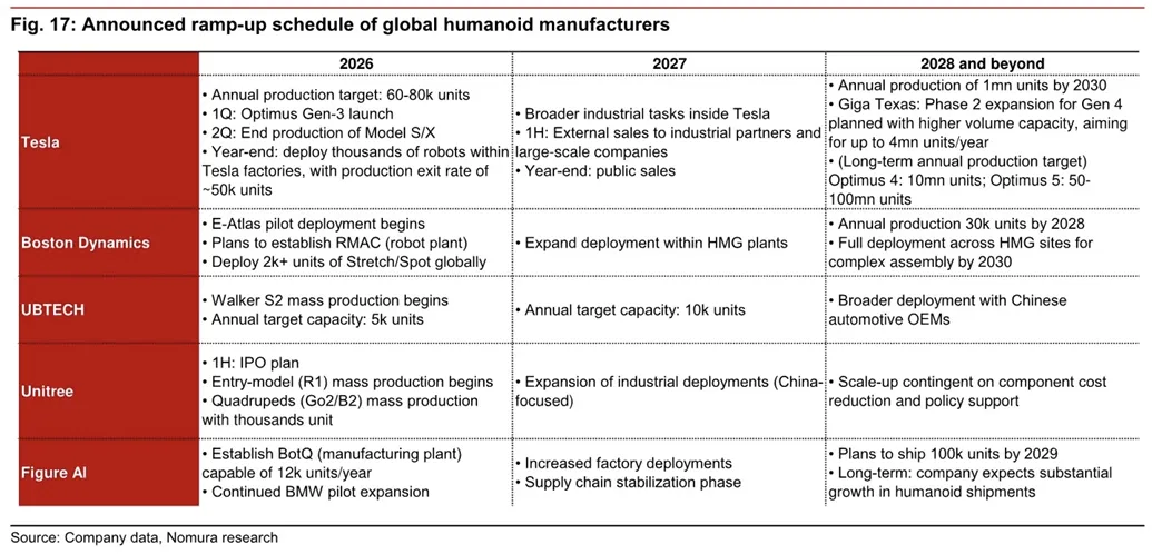 近期,野村发布了《Global Physical AI – Industrial scaling begins》的额深度报告。市场对人工智能能力的狂热追捧掩盖了工业制造的残酷现实。物理人工智能和人形机器人赛道的真正角逐早已跳出了代码与神经网络的象牙塔,执行层面的经济学规律正在无情地筛选最终的幸存者。制造规模的扩张能力、供应链的深度整合水平以及真实工业场景的即时部署条件,构成了决定胜负的核心法则。这场从实验室样机向无人工厂转移的产业剧变,赋予了那些拥有雄厚资本支撑和自有工业测试床的系统集成商以压倒性的结构性优势,彻底打破了纯技术初创企业能够轻易颠覆行业的浪漫幻想。跨越商业化死亡谷的唯一路径,在于直面并解决机械执行环节的标准化难题与成本压缩极限。