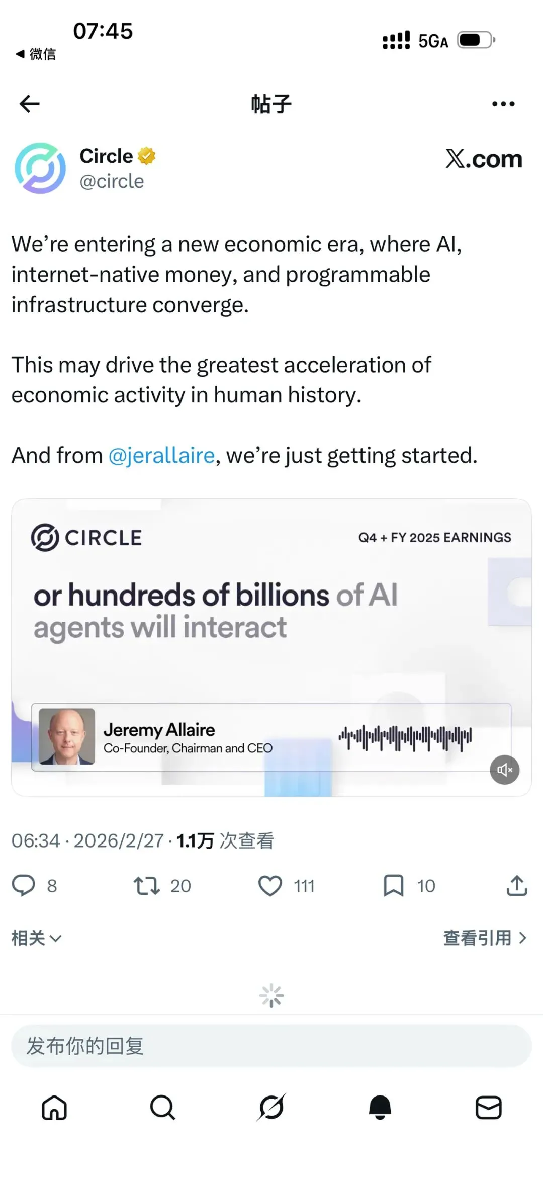 Crcl第四季度财报和全年财报电话会