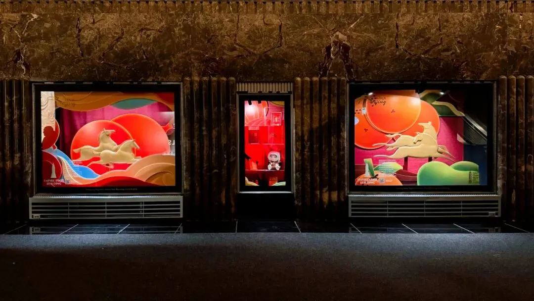 伦敦红色双层巴士换上马年涂装,纽约帝国大厦橱窗中生肖马向百万人潮传递东方祝福。