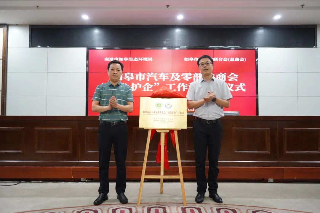 座谈会上,南通市如皋生态环境局党组书记、 局长黄晓华,如皋市委统战部副部长、市工商联党组书记许映华首先为如皋市汽车及零部件商会“绿色护企”工作站揭牌。