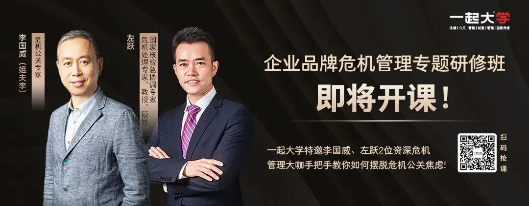 一起大学联袂李国威、左跃两位业界大咖,共同打造《2026企业品牌危机管理高阶研修班》