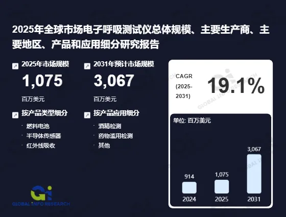 在全球对公共安全和无毒环境追求日益迫切的背景下,电子呼吸测试仪市场正迎来前所未有的爆发期。据GIR (Global Info Research)调研数据显示,2024年全球该领域收入大约为914百万美元。得益于技术普及与应用场景的拓宽,预计市场规模将在2031年急剧扩张至3067百万美元,实现超过三倍的增长。在2025至2031年期间,市场预计将保持高达19.1%的年复合增长率(CAGR),这一惊人的增速标志着该行业正从 niche 市场迅速迈向主流大众应用的关键转折点。