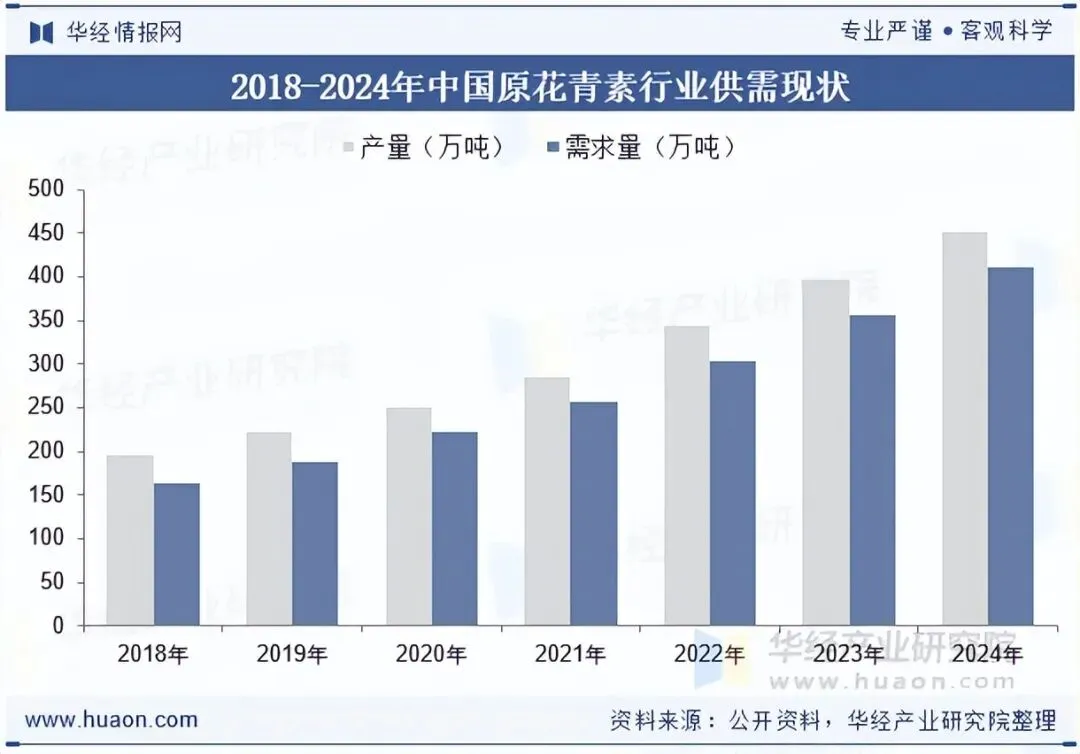 原花青素的研究始于20世纪40年代,其被用于治疗坏血病的松树皮制剂,并在松树皮制剂中鉴定了单体原花青素,阐明了原花青素的安全性,并鉴定了原花青素的一些生物活性。在20世纪80年代,富含原花青素的产品作为膳食补充剂进入天然产品市场。近年来我国原花青素行业供需不断增长,截至2024年我国原花青素行业产量为452.8吨,需求量为411吨。