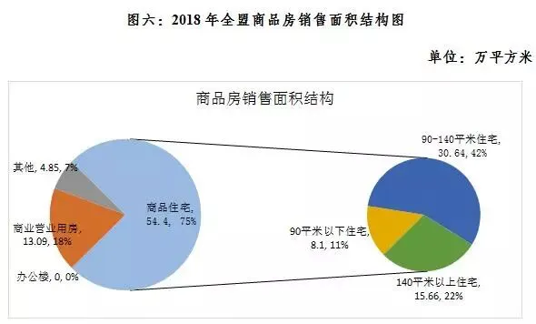 2018年,全盟商品房销售面积72.35万平方米,同比下降0.72%。前5个月房地产市场销售行情走高,下半年开始降温。