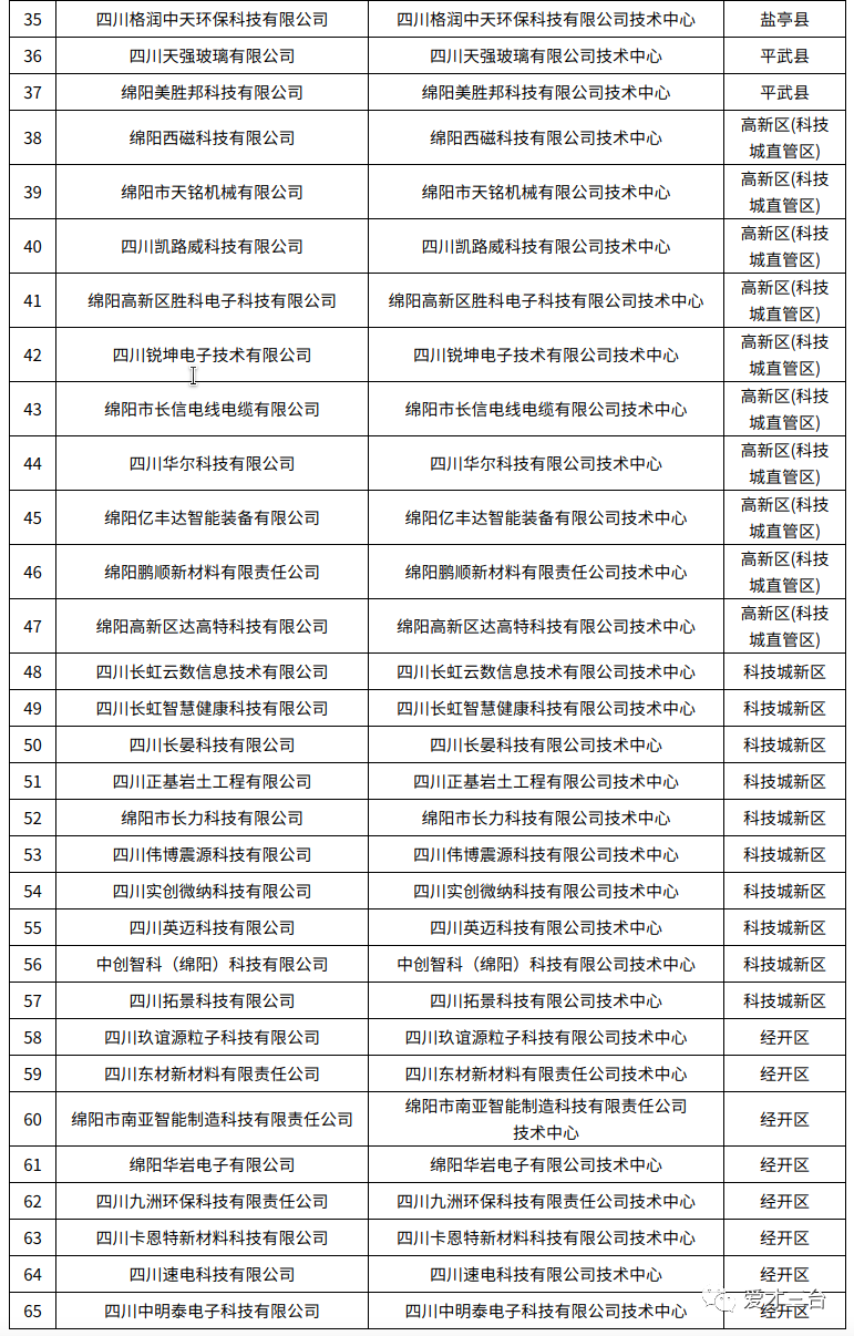 附件:2023年(第21批)绵阳市企业技术中心拟认定名单