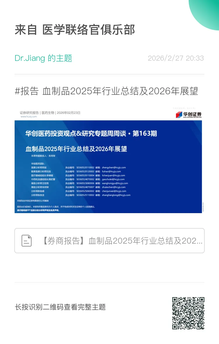 获取更多行业报告?、白皮书?、投资报告?、市场洞察?、趋势报告?、蓝皮书?,请添加小编微信号?MedicalLiasion