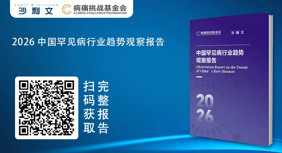 2026年2月27日,在第十九个国际罕见病日到来之际,北京病痛挑战公益基金会联合弗若斯特沙利文(Frost & Sullivan,以下简称“沙利文”)举办《2026罕见病行业趋势观察报告》线上发布会。这已是双方携手发布的第五份罕见病领域年度趋势观察报告。报告系统回顾了2025年中国罕见病领域从“政策搭建期”向“体系深化期”跨越的关键变革,发布六份最新领域清单,为罕见病治理提供全景式呈现。