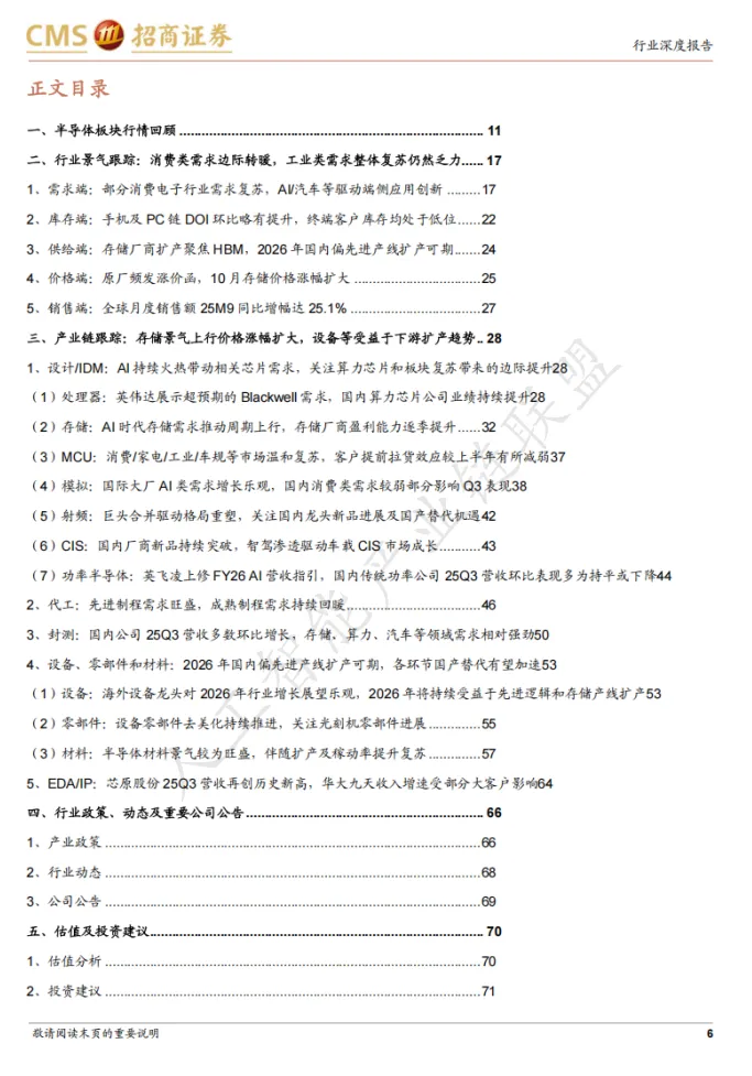 结语:这份招商证券的深度报告为我们勾勒出一幅清晰的半导体产业图景——AI革命正在重塑行业格局,存储芯片引领新一轮景气周期,国产替代进入深水区。对于投资者而言,把握算力、存储、设备材料三大主线,关注具有核心技术壁垒和产能扩张能力的龙头公司,将是分享这一轮半导体产业红利的关键。