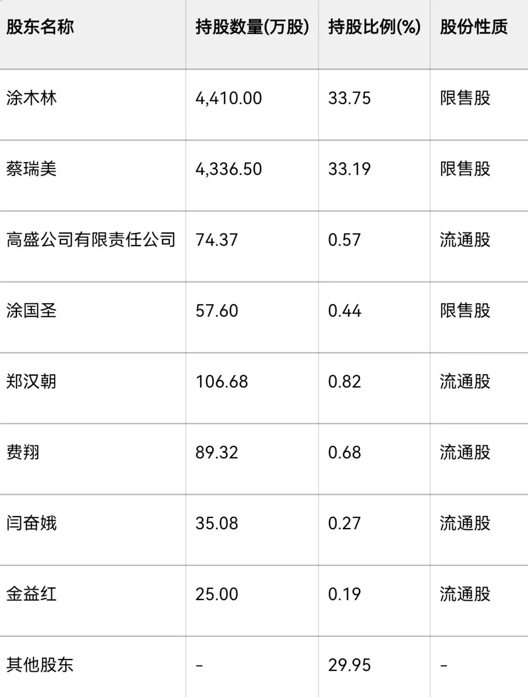 截至2026年2月27日,公司总股本1.31亿股,总市值22.46亿元,实控人为涂木林、蔡瑞美夫妇,合计持股66.94% 。公司产品广泛应用于食品加工、物流运输、机场、轧钢、纺织印染、铝型材加工等行业领域 。