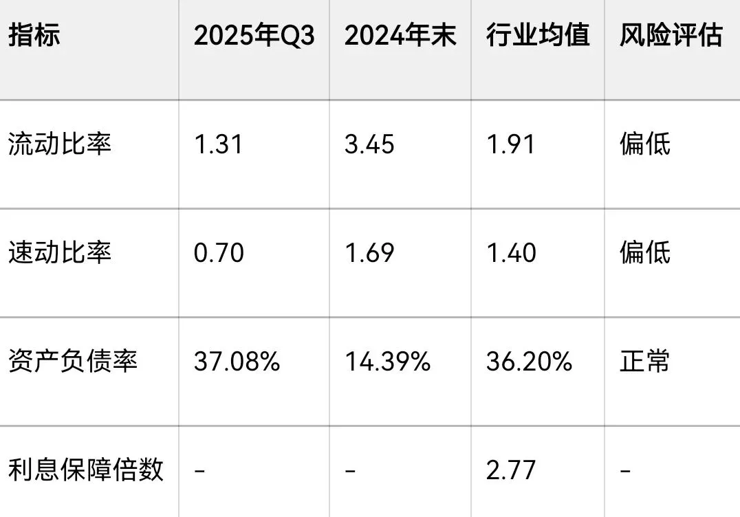 4. 现金储备偏低:货币资金/流动负债仅为28.43%,短期偿债能力偏弱 。