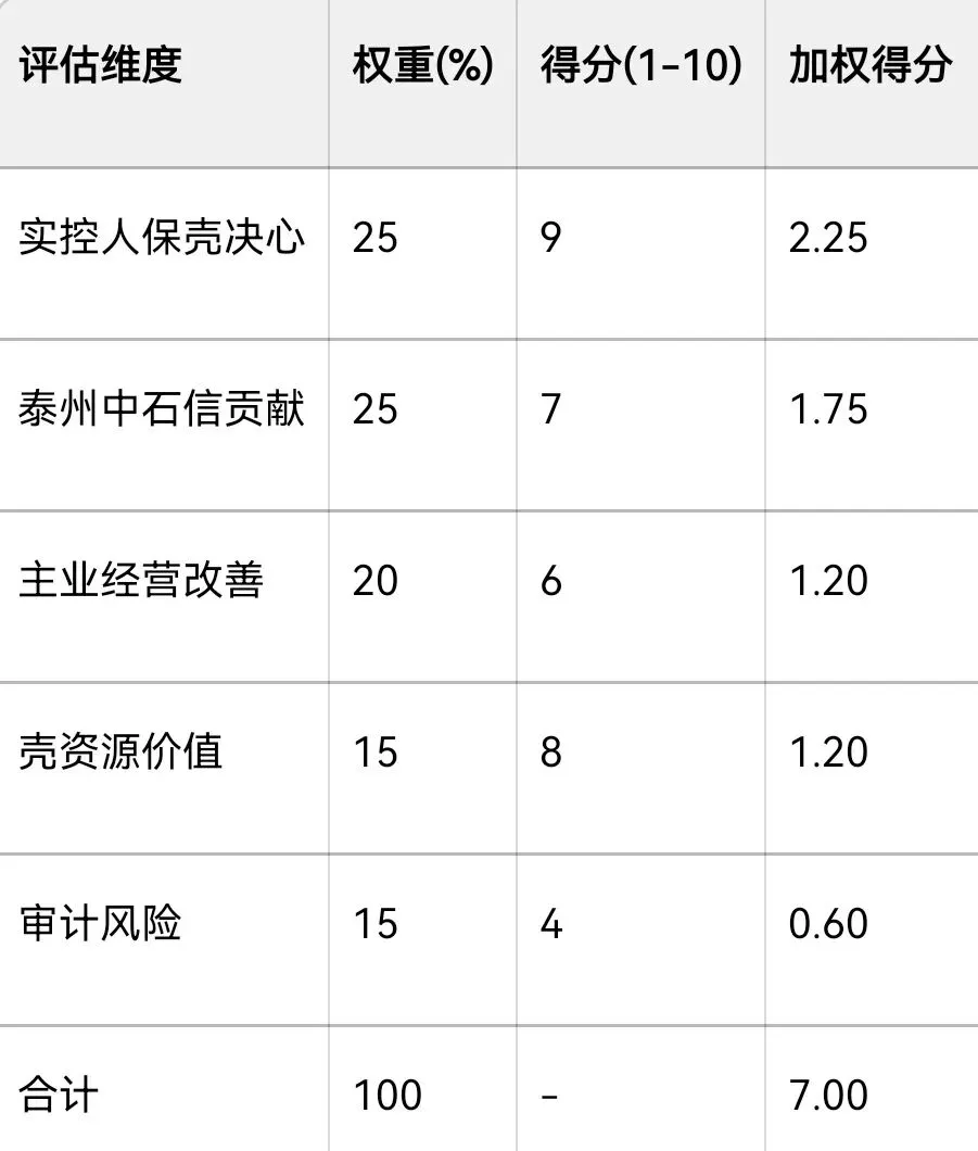 - 悲观情景(概率20%):泰州中石信收入被大量扣除,扣除后营收低于3亿元,继续ST,股价下跌20-30%。