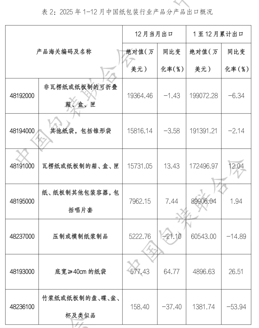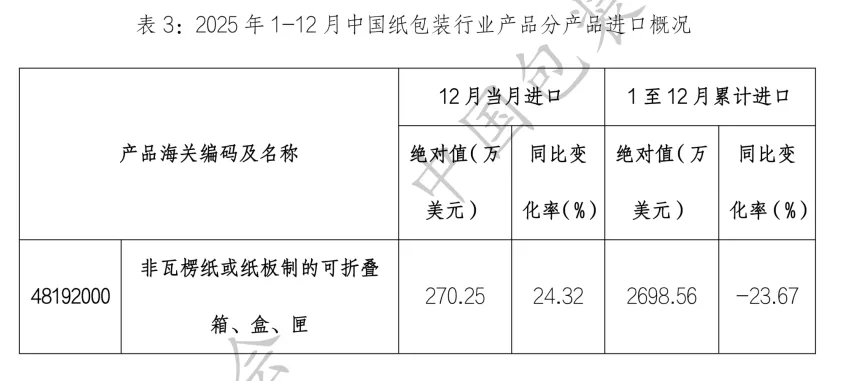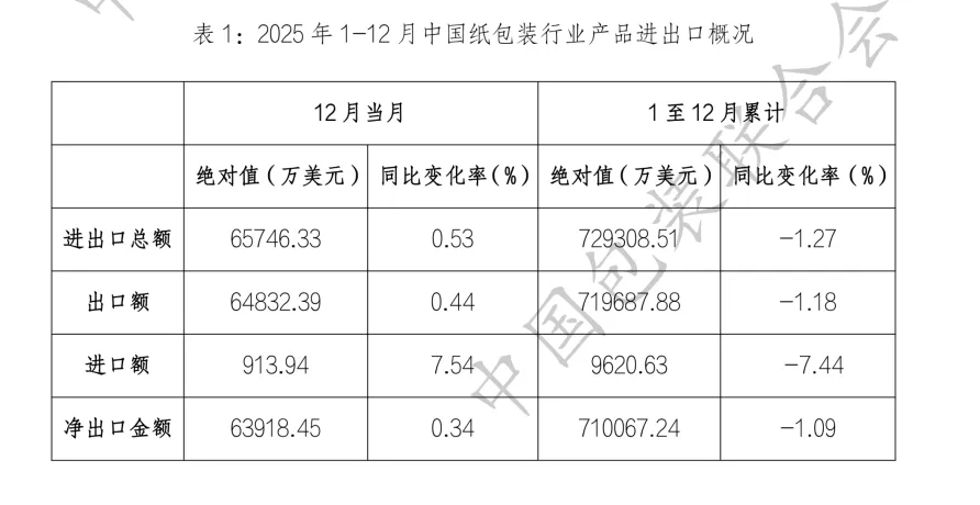 原题:中国纸包装行业产品进出口情况分析报告(2025年1-12月)