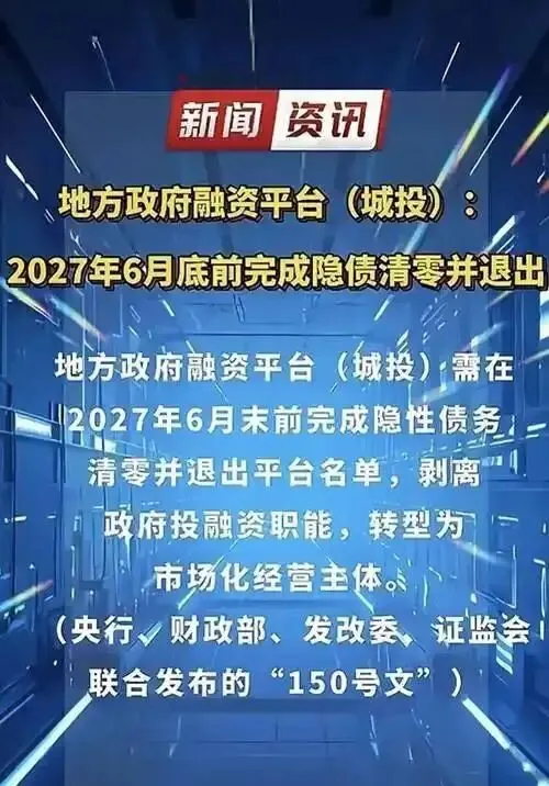 2024年银发〔2024〕150号文明确“2027年6月底前实现融资平台市场化转型清零”,要求城投公司彻底剥离政府融资职能,建立“自主经营、自负盈亏”的市场化机制。2025年中央政治局会议进一步强调“有力有序有效推进地方融资平台出清”,标志着依赖政府信用背书的旧模式全面终结。政策窗口期的收紧(仅剩16个月),迫使城投公司从“被动等待”转向“主动破局”。