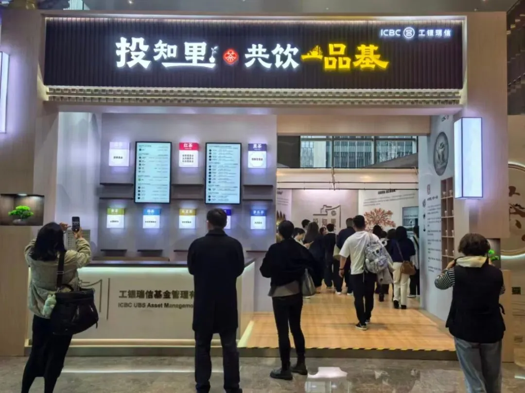 立足公募基金高质量发展阶段,工银瑞信升级“投知里”品牌IP,创新推出“共饮一品基”特色展台。展台以“茶韵融投智”为内核,“共饮”谐音“工银”,传递品牌与投资者共享成长的核心理念。构建“茶园探茗、茶艺匠心、茶席品茗、茶室智投”四大主题板块,融合“前店后厂”实景交互、可视化数据图谱、真实案例解析、数字化技术呈现等多元手段,生动解读基金投研能力、降费让利等核心优势。让投资者在沉浸式茶叙场景中“以茶观基、借茗悟道”,实现投教知识的轻松传递。