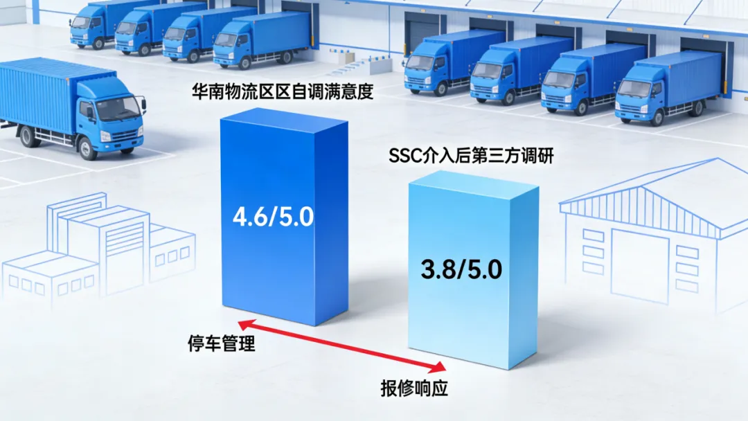 SSC实践案例:某华南物流园区自调满意度达4.6/5.0,而SSC介入后第三方调研结果仅为3.8,差距集中在“停车管理”“报修响应”等敏感项——这些正是后续客户流失的关键诱因。