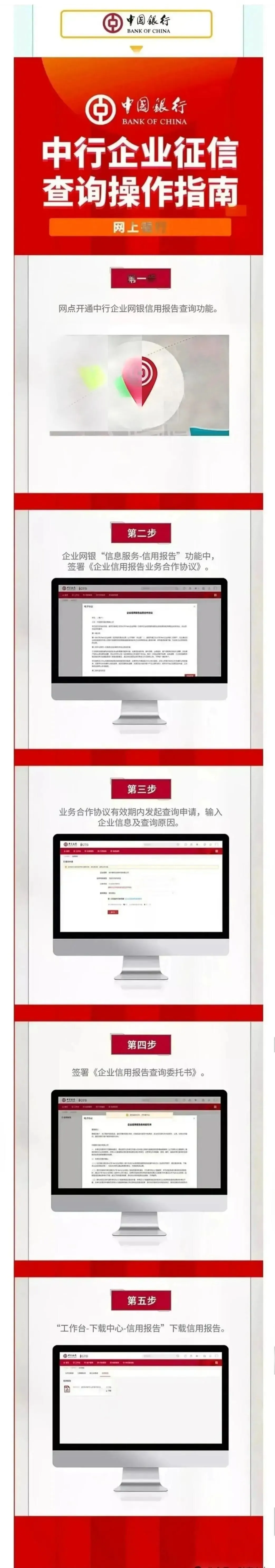 中国银行:首次需要去线下去开户行,开通《中行企业网银信用报告查询功能》,开通后,登录企业网银端查询。