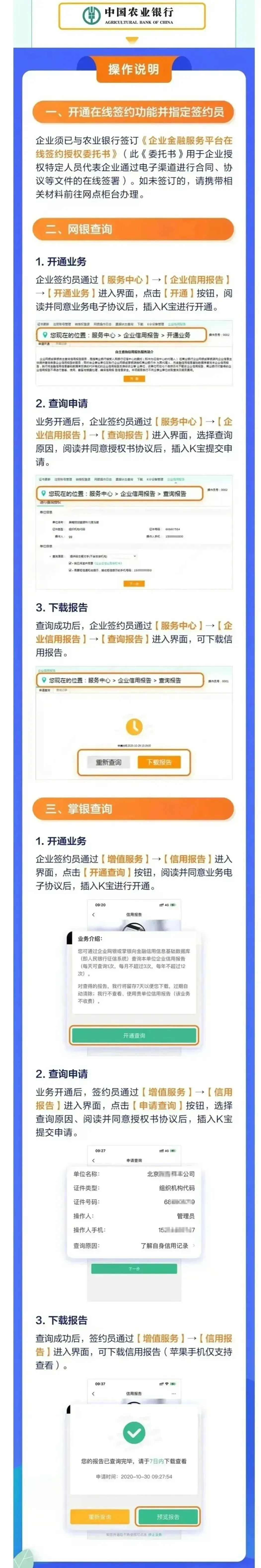 农业银行:首次需要去线下去开户行,签订《企业金融服务平台在线签约授权委托书》,签约后,仅签约员有权限操作,登录企业网银端或企业手机银行端查询。