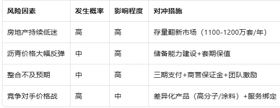 关键变量:并购后的沥青储备能力建设和施工服务团队整合是决定胜率的核心,需在12-18个月内验证。