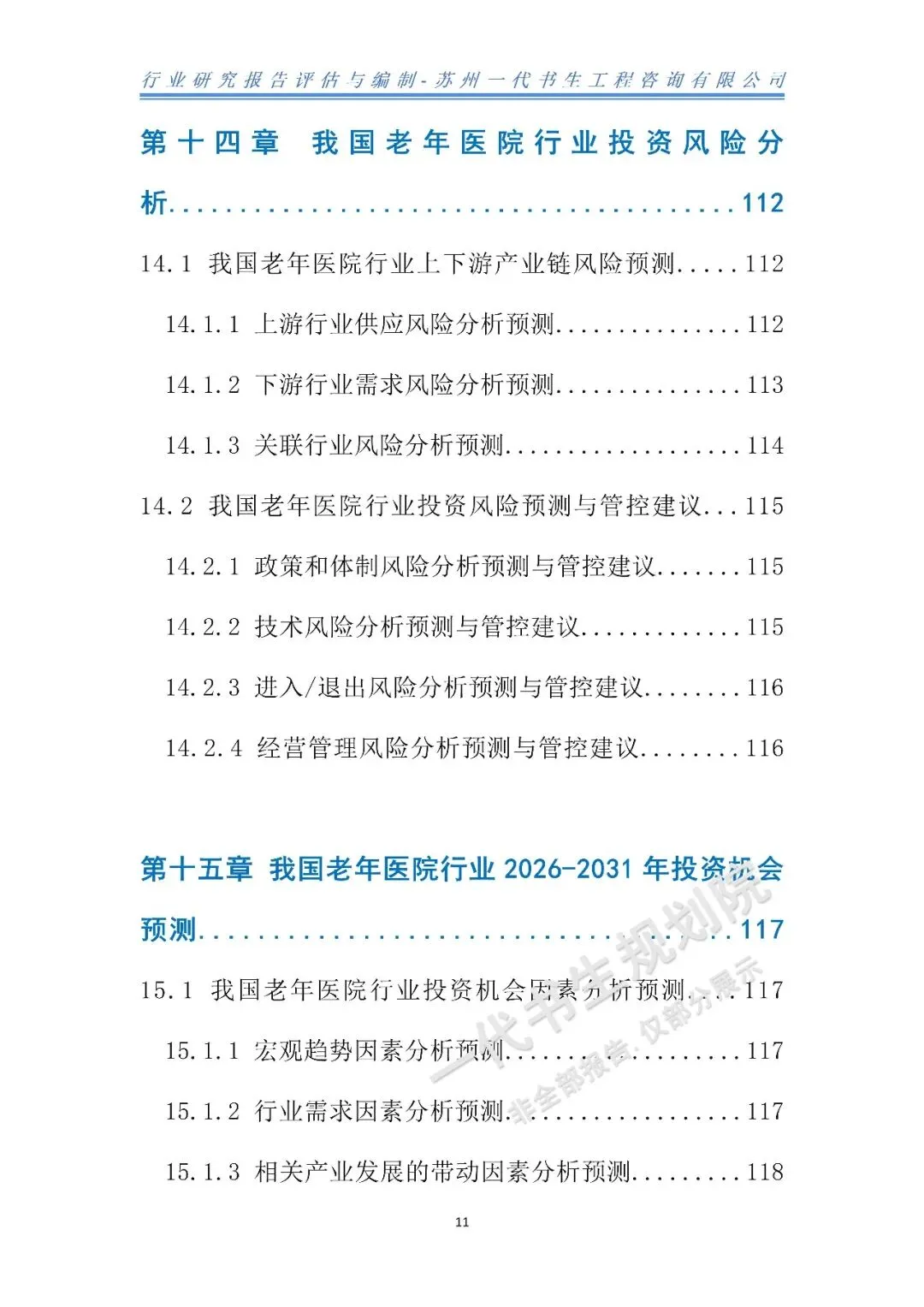 本老年专科医院行业报告是由一代书生工程咨询有限公司编制,聚焦2026-2031年我国老年专科医院行业,核心编制要点分三方面,精准呈现行业发展核心逻辑,兼具数据支撑与趋势预判,供相关主体决策参考。