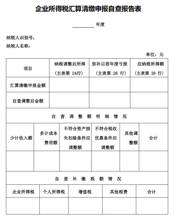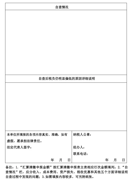 企业所得税汇算清缴申报自查报告表