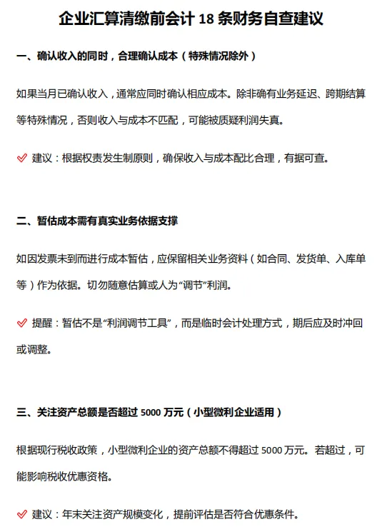 企业汇算清缴前会计18条财务自查建议