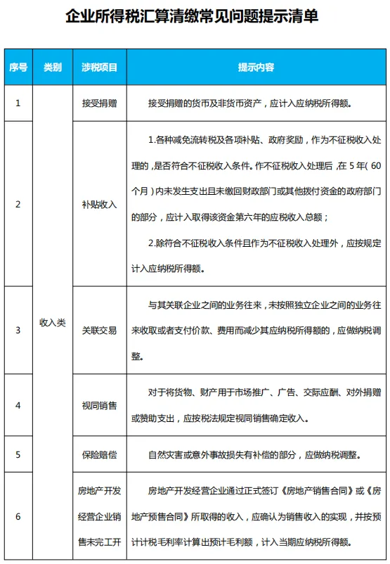 企业所得税汇算清缴常见问题提示清单