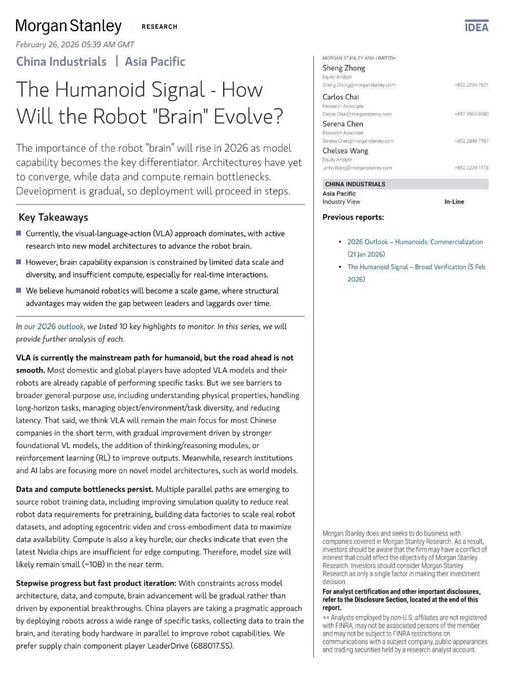 大摩——人形机器人的信号:机器人“大脑”将如何演进?