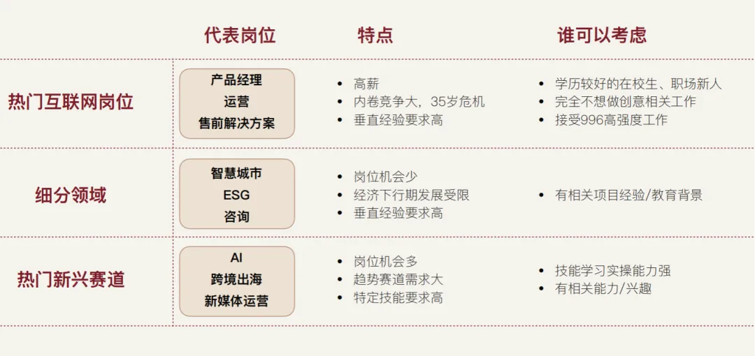 特别提醒:如果你想转产品经理,最好提前规划实习;运营类岗位种类多,相对机会多一些,但也要有心理准备——大厂的产品岗,很多时候你只是做一个产品从1万到1.5万的迭代,而不是从0到1的创造。