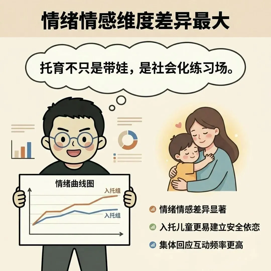 结论很清晰:入托儿童的整体发展水平显著优于非入托儿童。