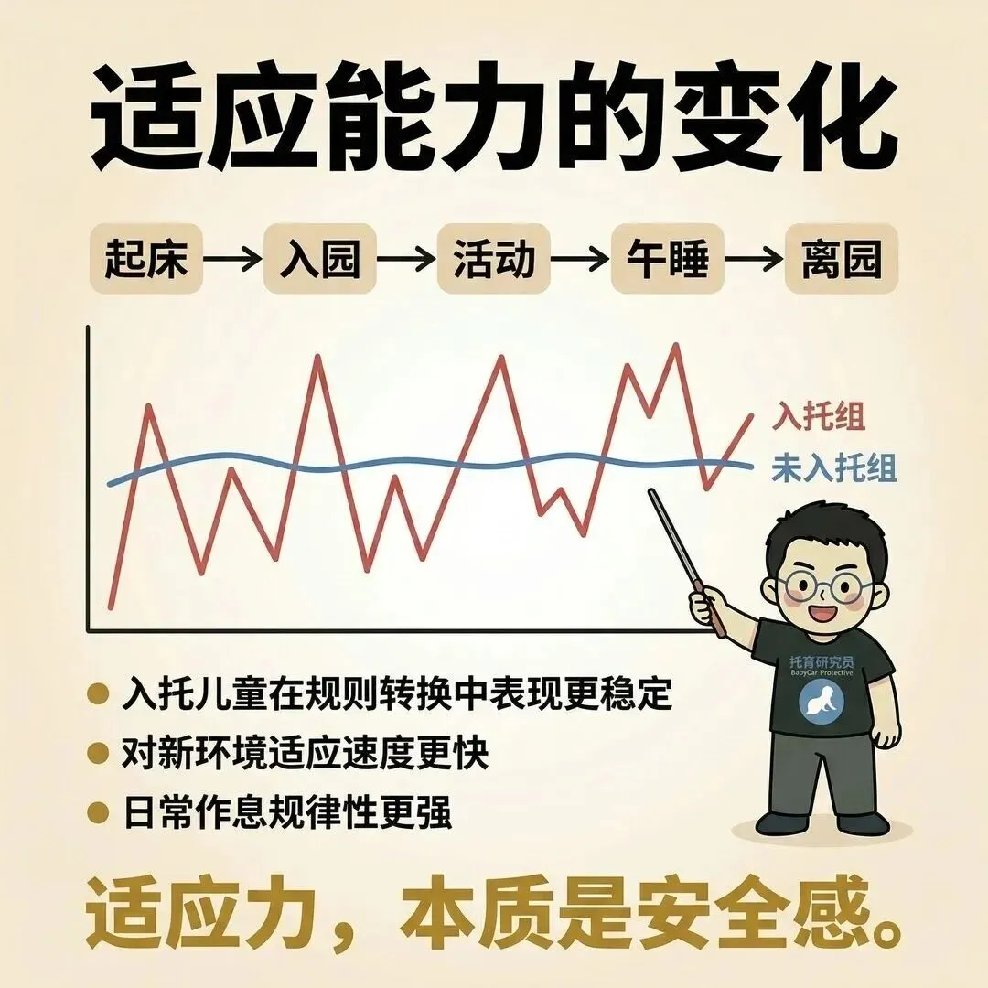 适应能力上:他们对新环境更从容、作息更规律、在不同规则间的转换也更顺畅。所以,托育的价值,并不仅仅是“有人帮忙带孩子”。它更像是一种系统性的早期发展环境支持。