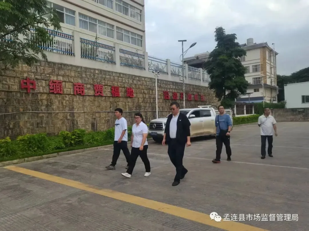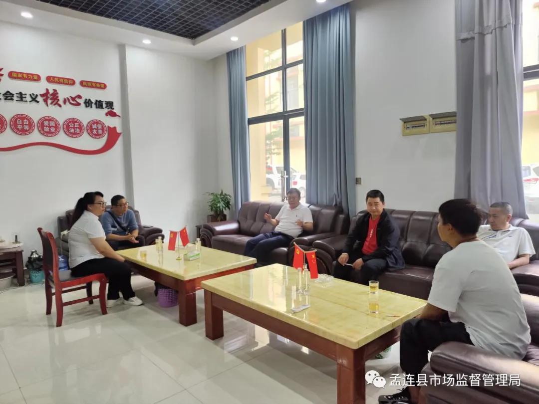 市场监督管理局副局长徐嘉泽(中),凳记注册科科长陈琛(左),孟连县市场监督管理局副局长温二能(右1),勐马镇党政办陈刚(右2)到普洱边合区投资开发集团有限责任公司进行调研