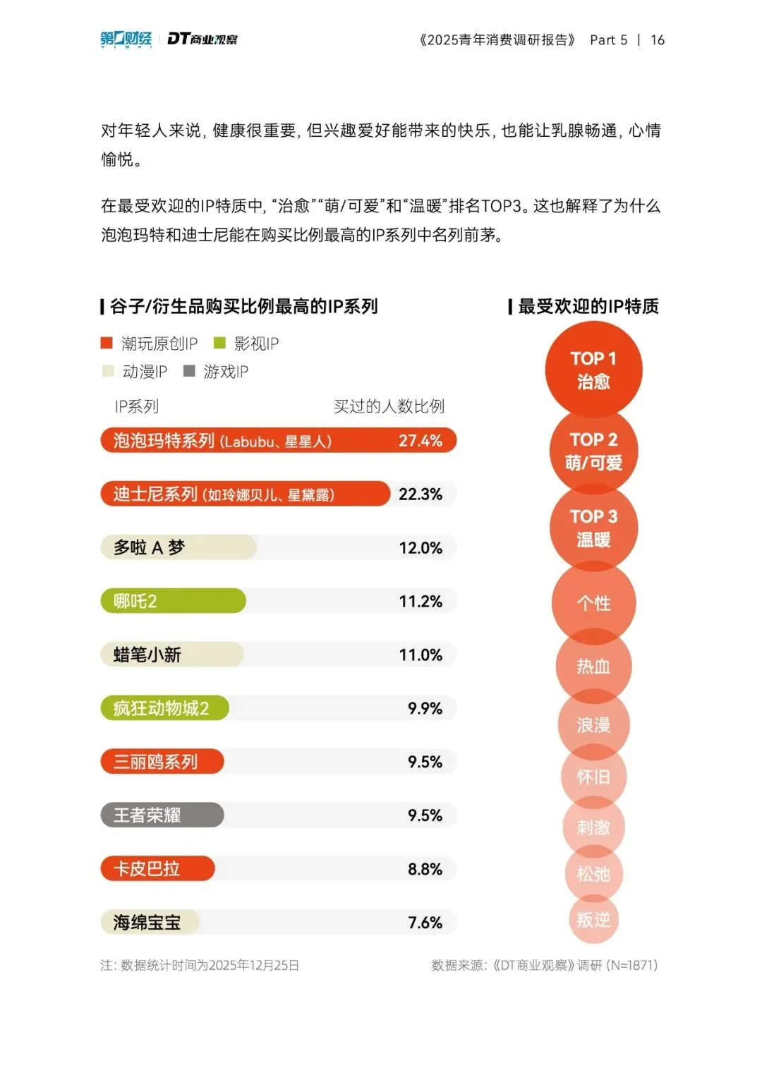 值得注意的是,64.5%的年轻人仍在为谷子和IP衍生品买单,他们追求的不是物质本身,而是“治愈”“萌”带来的确定性快乐。