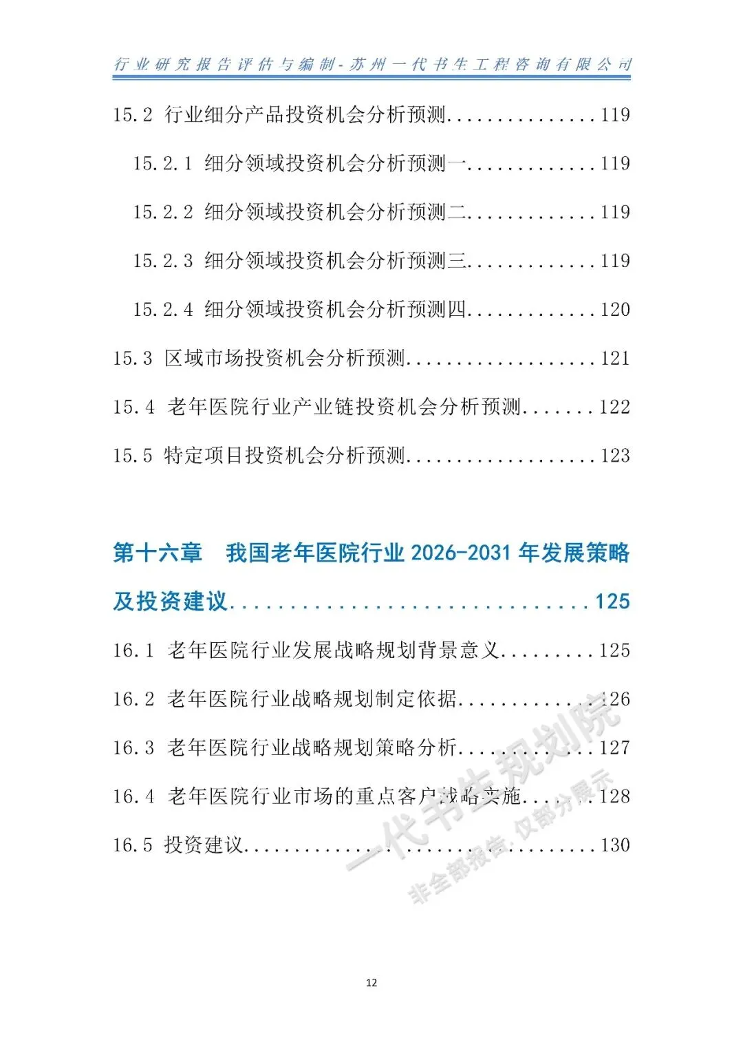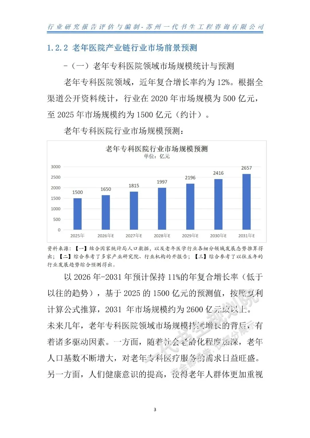 本老年专科医院行业报告是由一代书生工程咨询有限公司编制,聚焦2026-2031年我国老年专科医院行业,核心编制要点分三方面,精准呈现行业发展核心逻辑,兼具数据支撑与趋势预判,供相关主体决策参考。