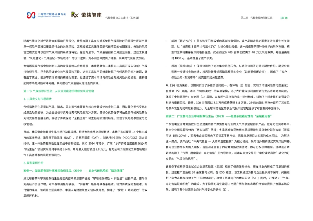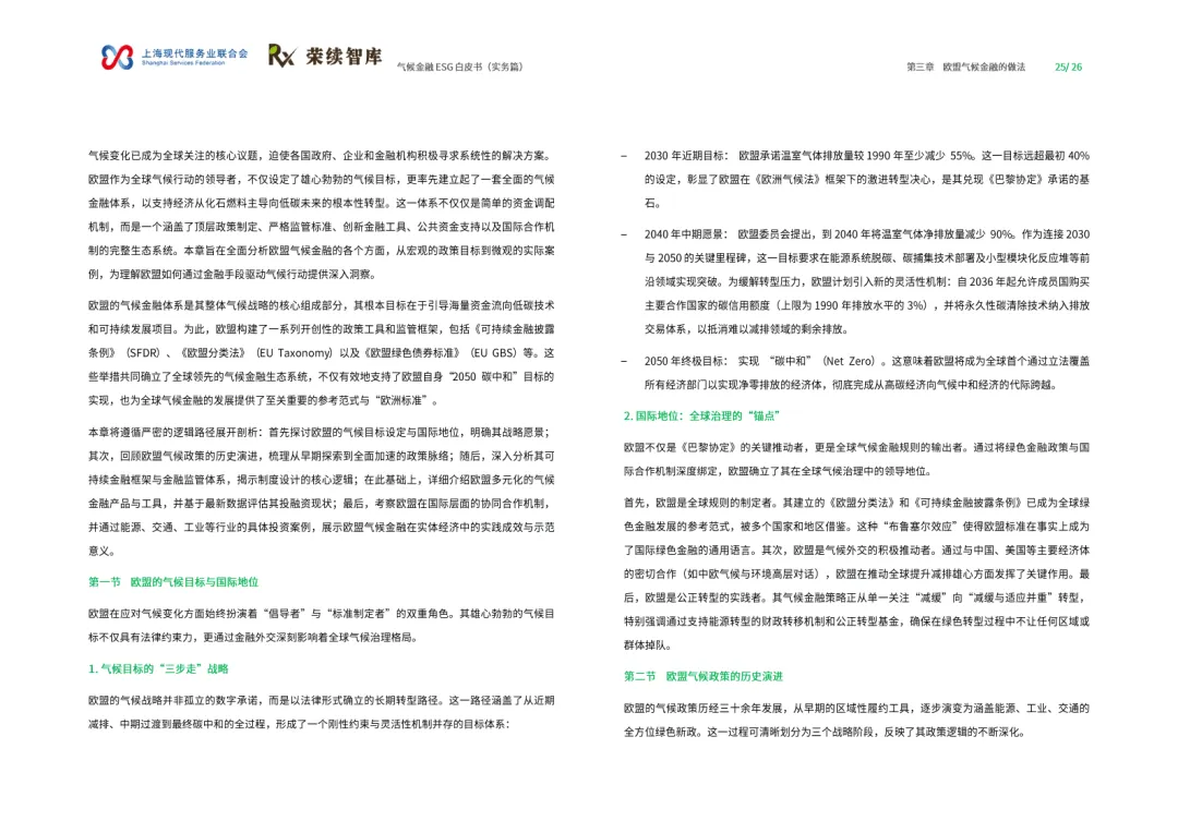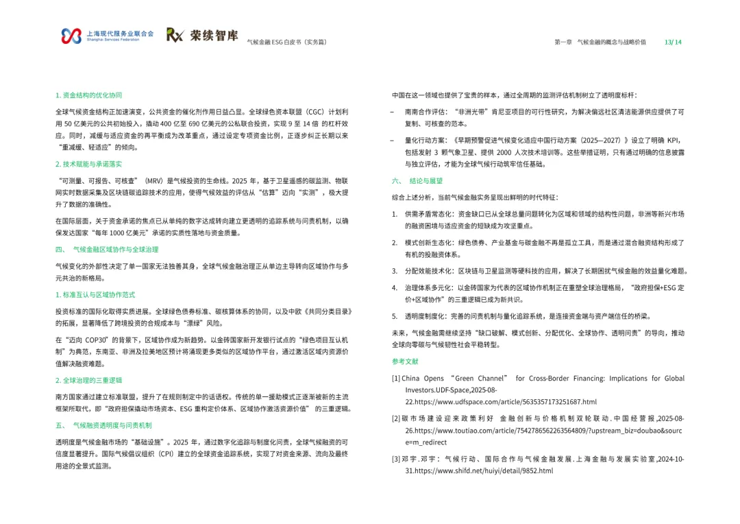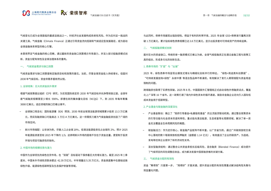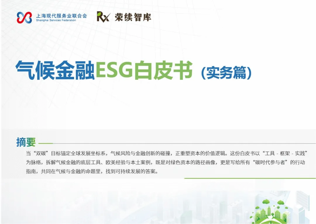 这份由上海现代服务业联合会与荣续智库联合发布的气候金融ESG白皮书(实务篇),以“工具-框架-实践”为脉络,系统拆解气候金融底层逻辑、国际经验与本土实践,搭建可落地的气候金融行动框架,为政府、金融机构、实体企业提供气候金融领域的共识手册与行动指南。
