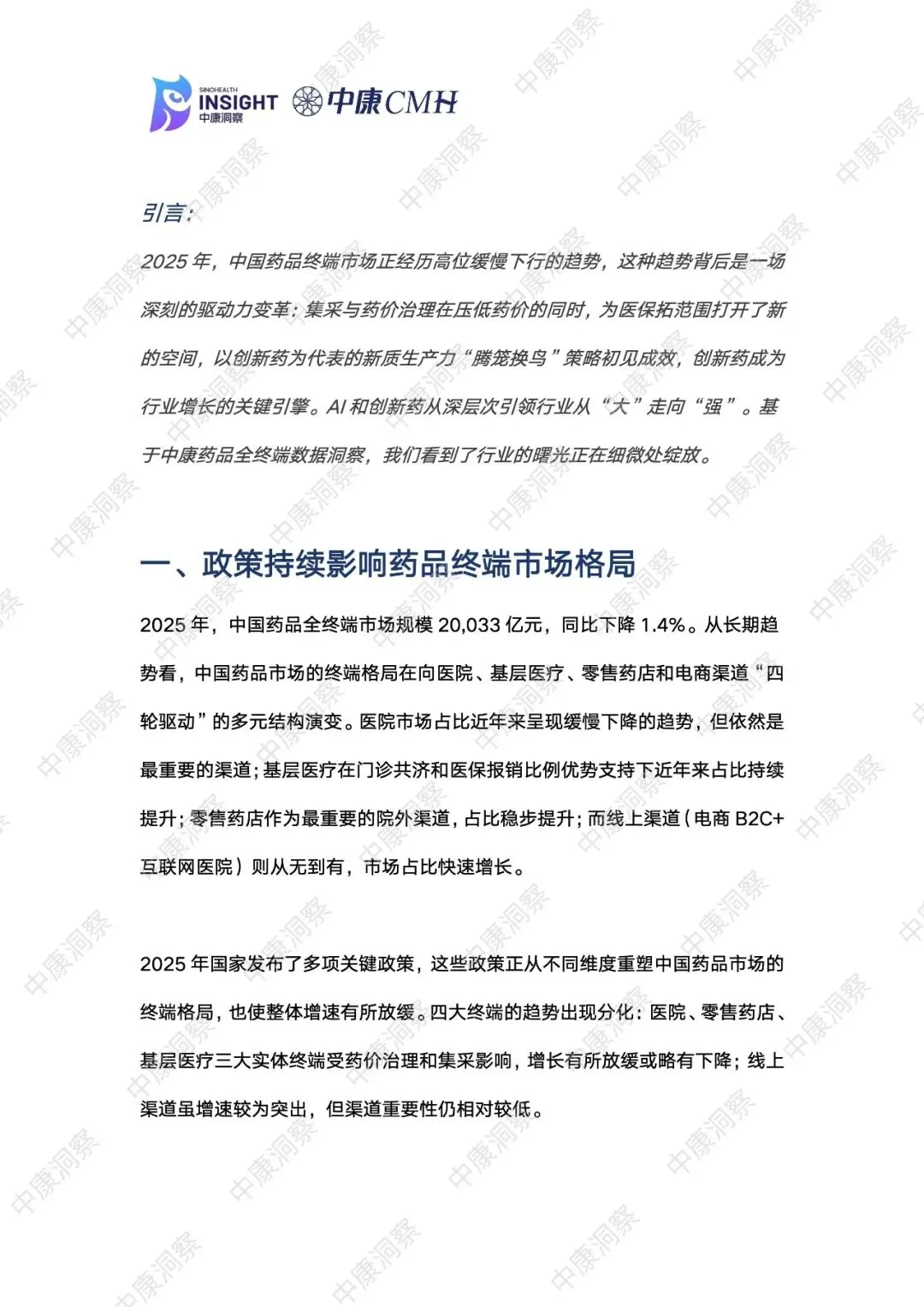 报告名称:《曙光初现:2025药品全终端市场回顾与展望报告-中康科技》