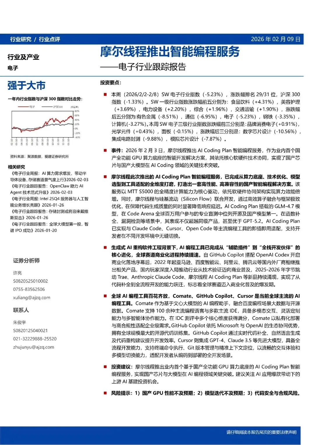 回复暗号:电子行业跟踪报告:摩尔线程推出智能编程服务-260209-爱建证券-17页